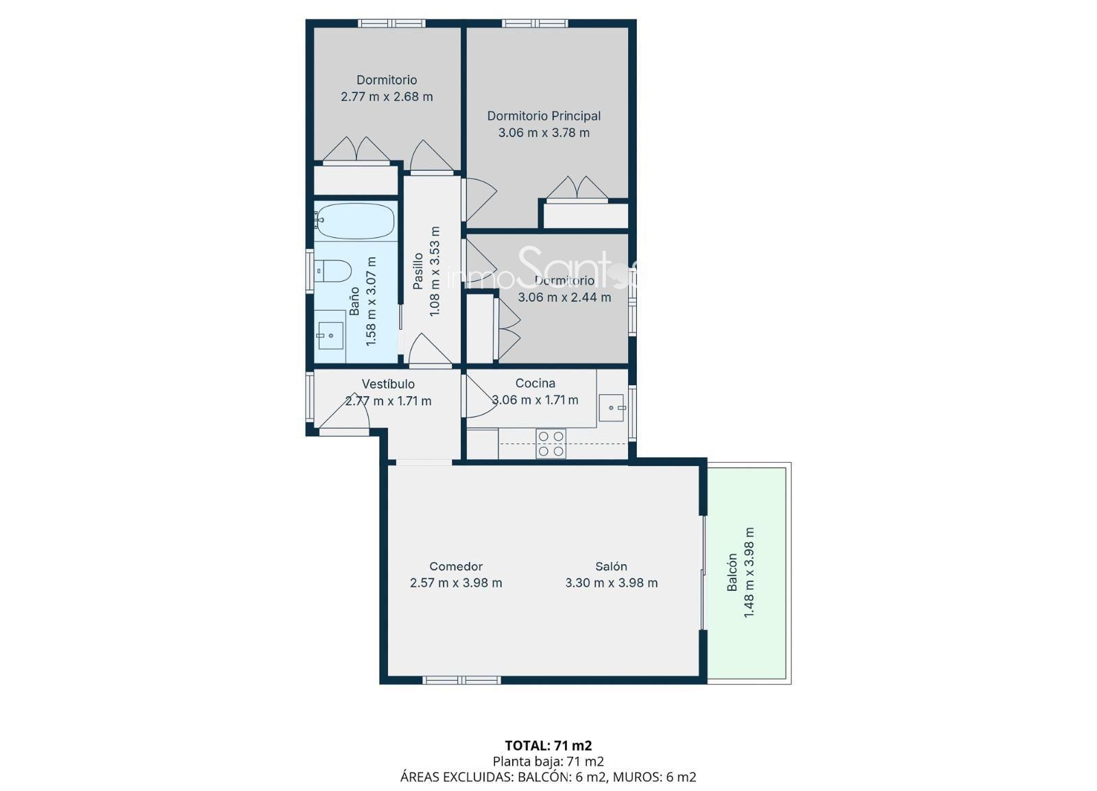 The apartment consists of 3 bedrooms, a full bathroom, a functional kitchen and a bright living room with access to a pleasant outdoor area. It features air conditioning with a heat pump.